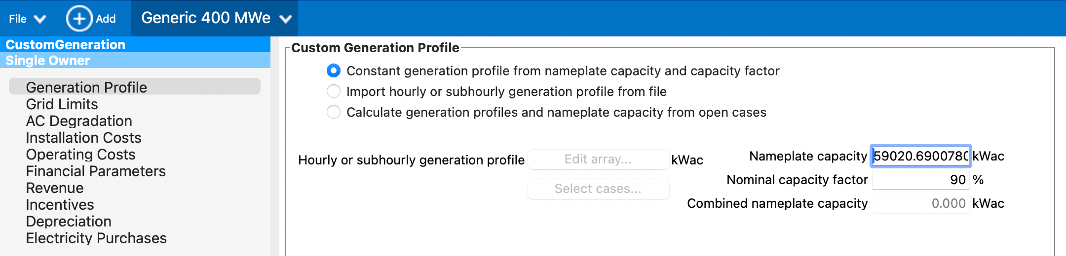 First, open src/geophires_sam_economics/Generic_400_MWe.sam